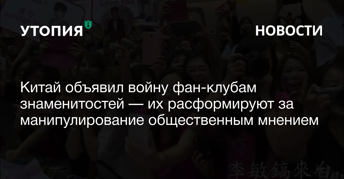 Китайская служба надзора за интернетом 15 июня начала операцию по контролю за фан-клубами популярных певцов и актеров. Фанатов обвиняют в кибербуллинге, мошенничестве и манипулировании общественным мнением. Сама культура фан-клубов, по мнению властей, «отрицательно сказывается на психическом здоровье несовершеннолетних».