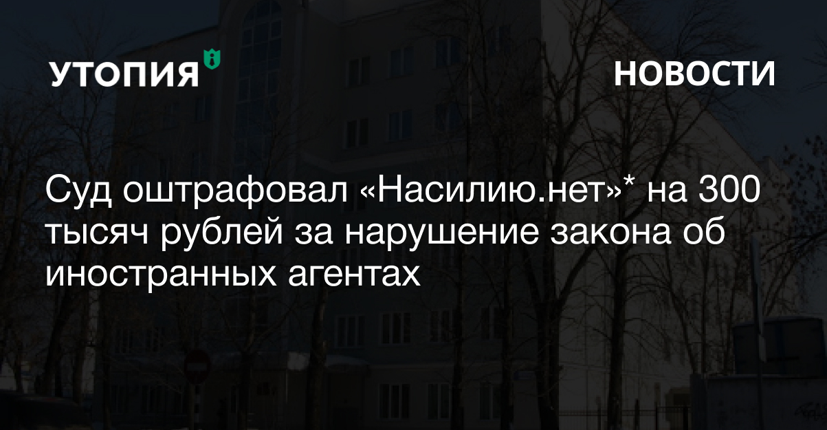 Суд оштрафовал «Насилию.нет»* на 300 тысяч рублей за нарушение закона об иностранных агентах